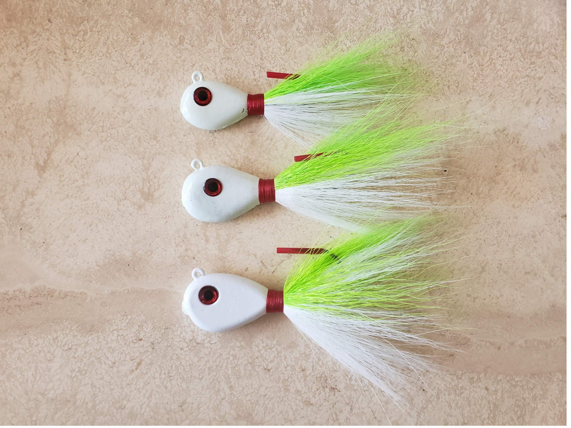 Joe's Custom Saltwater Hair Jigs. Chartreuse/White. 4 oz.